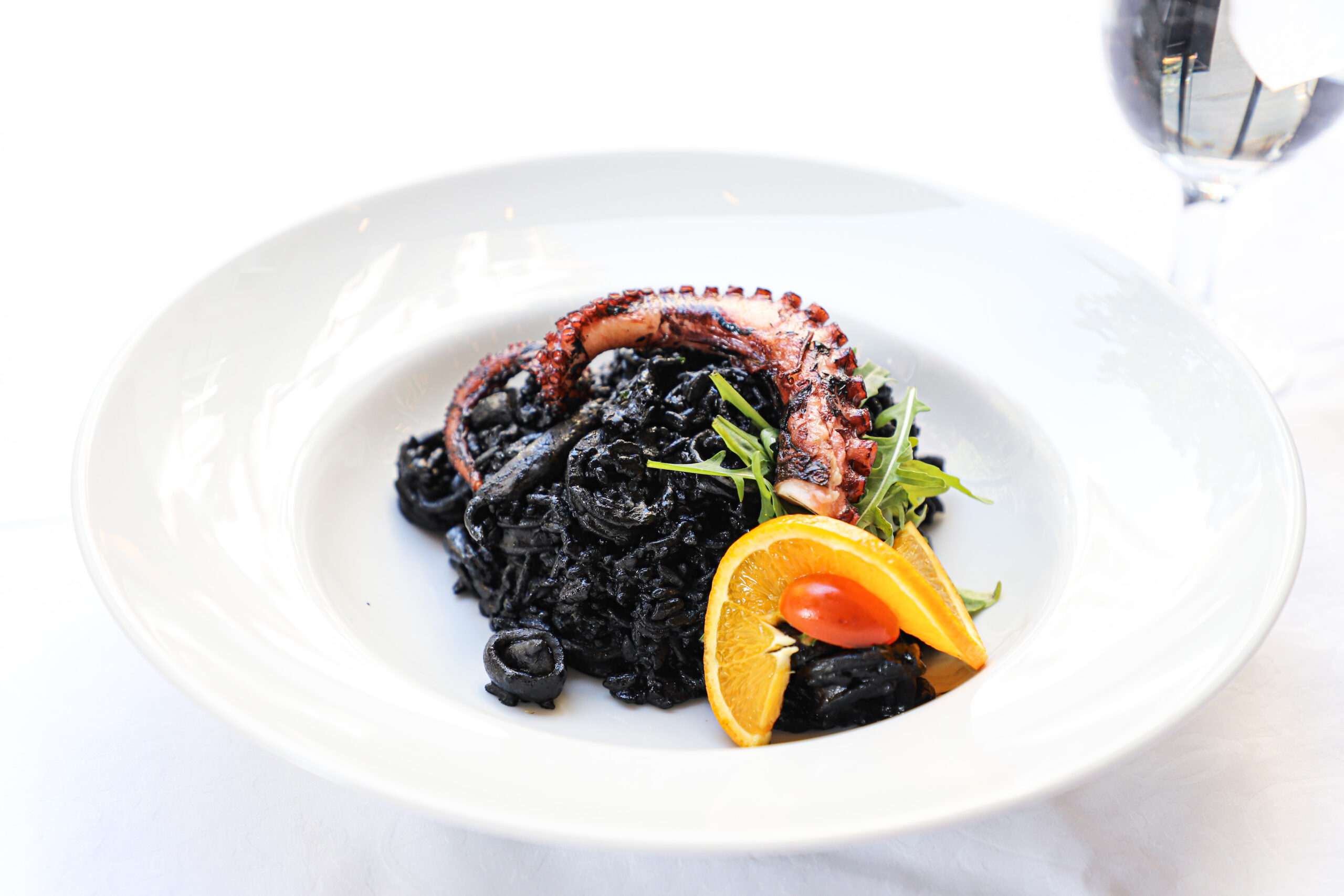 Octopus, arugula, cherry tomatoes, red onion, olive oil, lemon, capers.